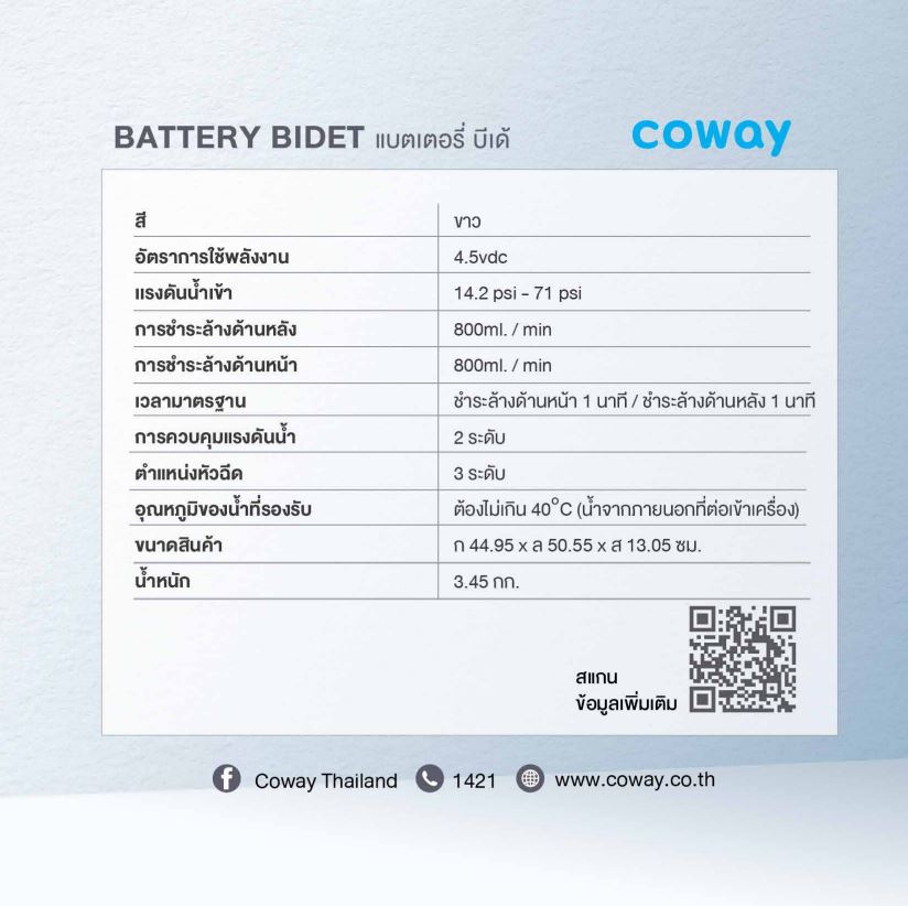 พบกับมาตรฐานสุขภัณฑ์แบบใหม่ ด้วย Coway Battery Bidet